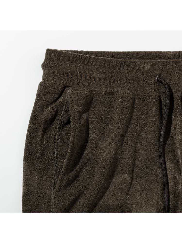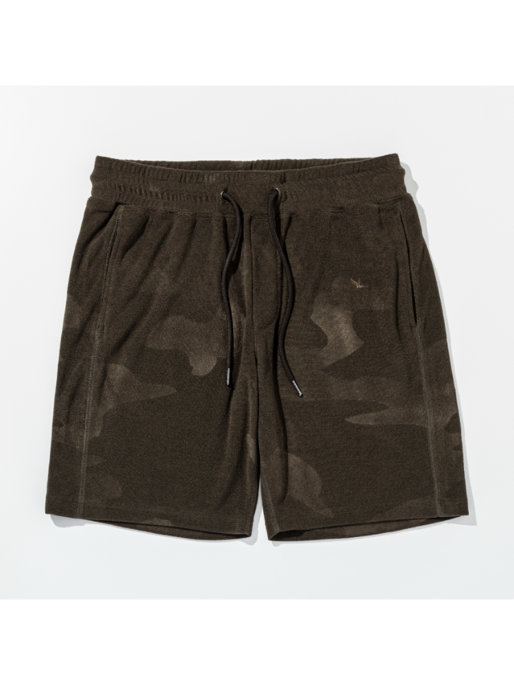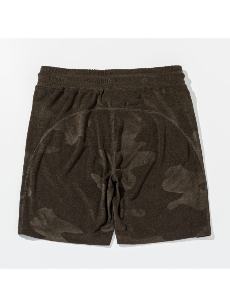 ブランドオリジナルカモをエンボス加工で表現したパイル素材のショーツ。
