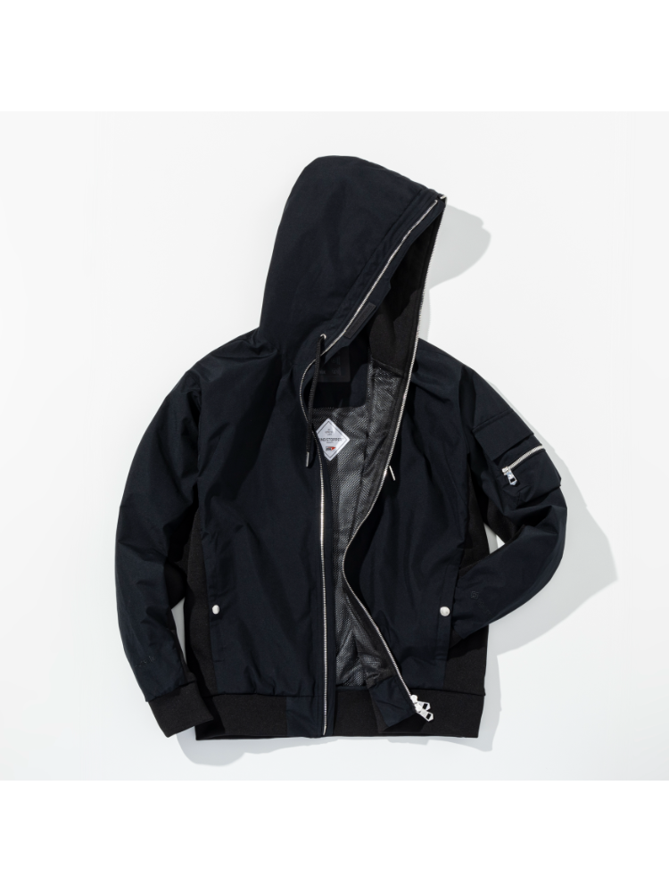 1PIUで人気のバイカーデザインのジップフーディをゴアテックス素材で再現。