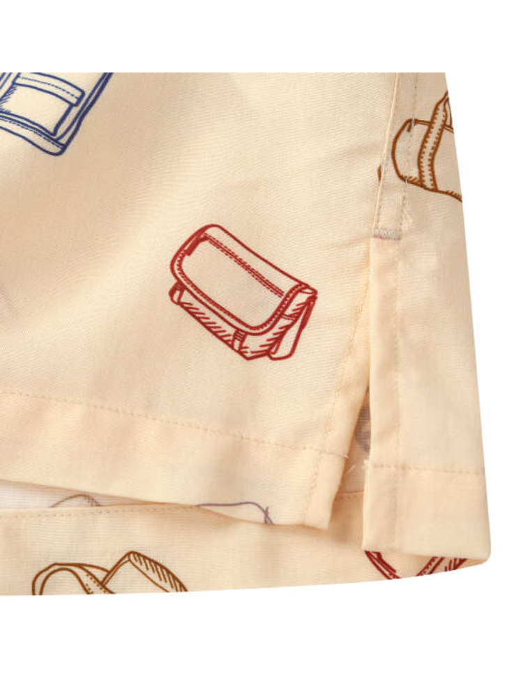 総柄プリントがコーディネートに遊び心を添え、スタイリングの主役として存在感を発揮します。