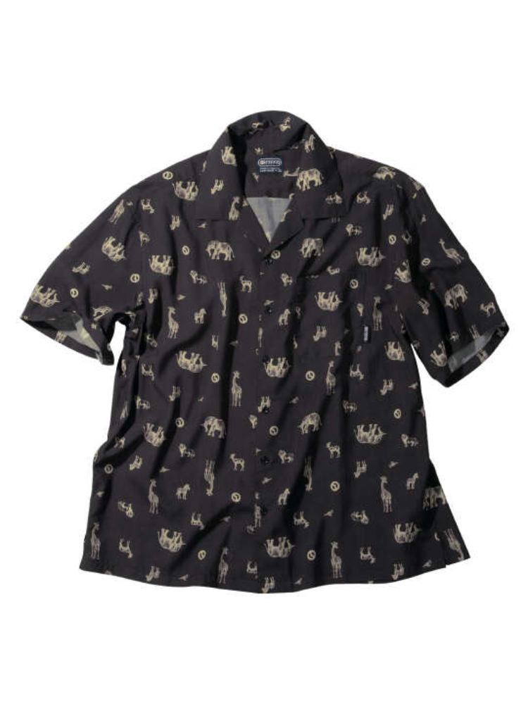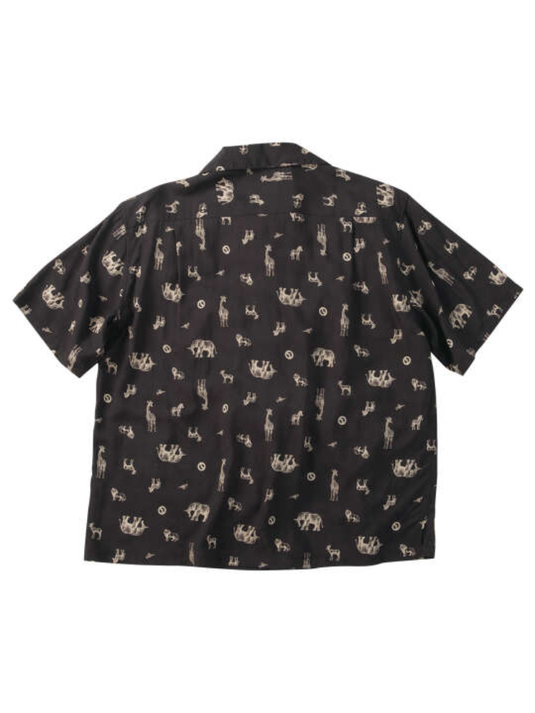 オープンカラー/胸ポケット/サイドスリット/サイドタック(背面)/総柄